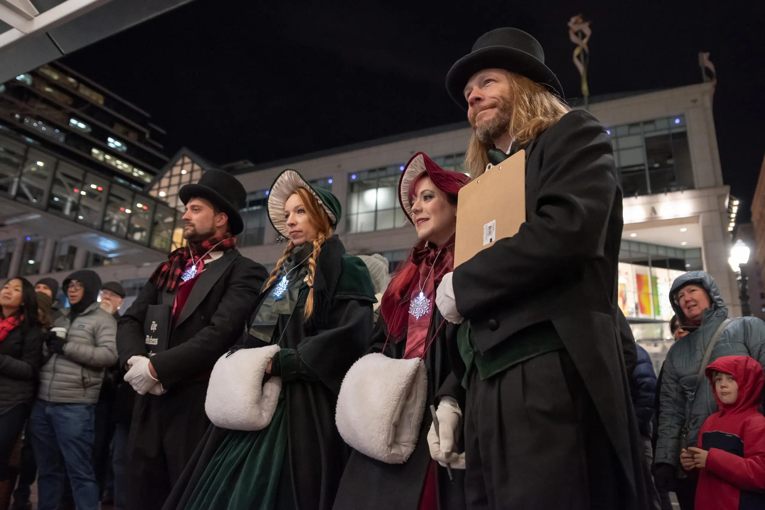 The Dicken’s Carolers will be at the dots along Portland’s Transit Mall spreading holiday cheer!